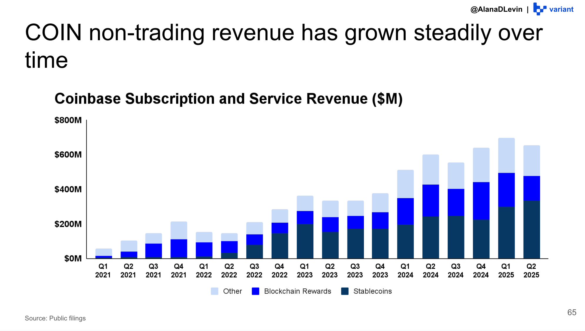 3. Centralized Exchanges: Centralized exchanges are some of the clearest winners from the “accumulation” s-curve. Both volumes and revenue have grown dramatically over the past five years. And notably, a second-order effect of the growth in trading is that users then hold those assets on exchanges – enabling exchanges to offer an expanded set of utility (e.g. staking, yield, and lending products). Many of the new ways to utilize crypto assets will end up getting built directly onchain, but may find strong distribution through centralized exchange integrations.